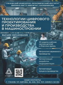 Глазов — город машиностроителей. Здесь предприятия, которые ждут именно таких специалистов: с современными цифровыми компетенциями и пониманием реального производства. Ты будешь проходить практику на ведущих заводах города, уже со 2–3 курса погружаться в реальные задачи, а после выпуска иметь гарантированный спрос на рынке труда.